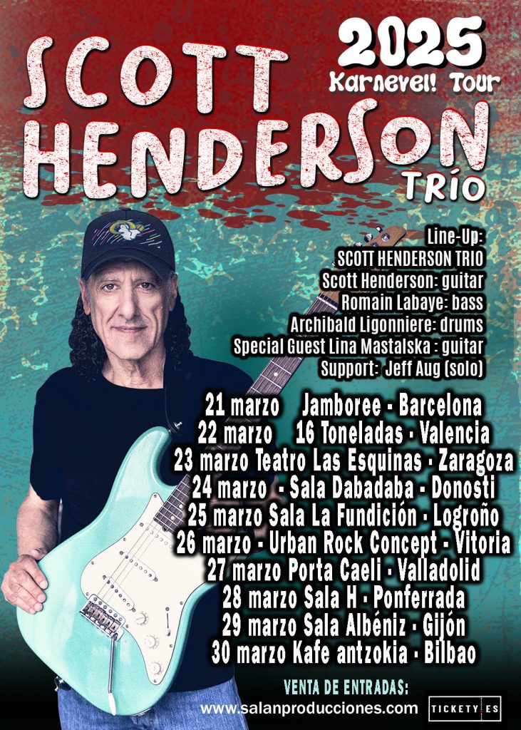Tras demasiados años sin disfrutarlo en nuestro país, el guitarrista norteamericano Scott Henderson presentará su nuevo disco de este año Karnevel! con una extensa gira en marzo en nuestro país. El artista, fundador de los míticos Tribal Tech, está considerado una de las figuras más relevantes e influyentes del jazz y del blues-rock.