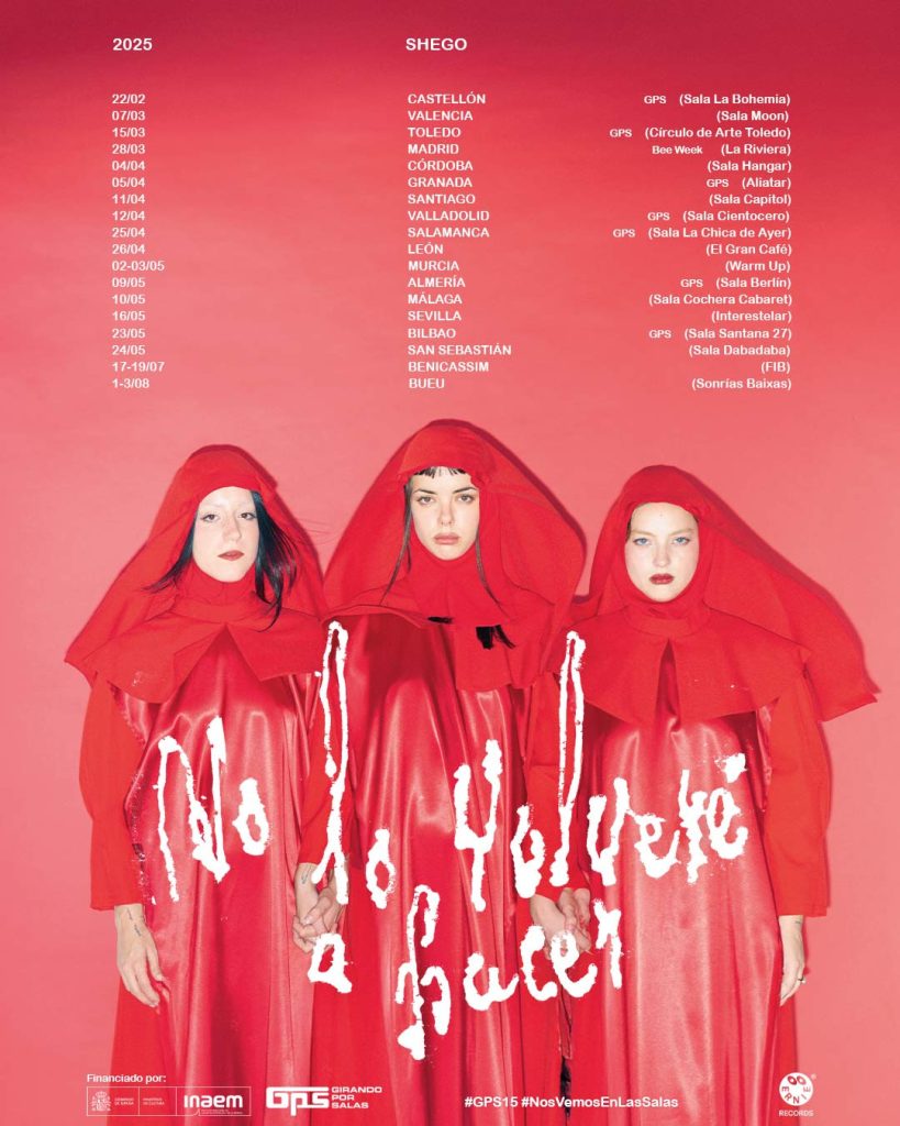 La gira de ‘No lo volveré hacer’ crece de manera imparable y las entradas vuelan. 2025 aún no ha comenzado y la banda ya se ha comprometido con, por ahora, dieciocho escenarios. Y subiendo. En los próximos meses, además de en Madrid, será posible disfrutar del directo de shego en Valencia (Sala Moon), Córdoba (Sala Hangar), Santiago de Compostela (Sala Capitol), Málaga (Cochera Cabaret) y San Sebastián (Dabadaba) y León (El Gran Café).
