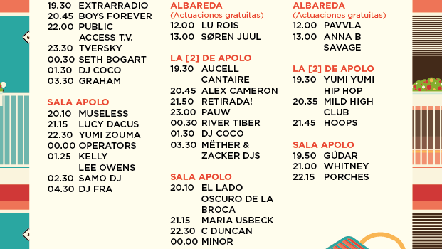 Ya es posible consultar los horarios de Primavera Club 2016 (en la imagen adjunta), que tendrá lugar del viernes 21 al domingo 23 de octubre en las salas Apolo y La [2] de Apolo y en el Centre Cultural Albareda.