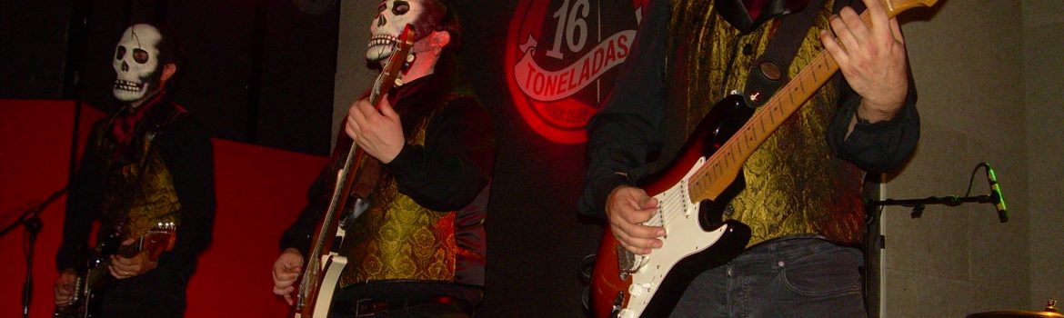 Por supuesto que interpretaron temas de su reciente trabajo “Aventuras en celuloide”, como “El Barón Rojo”, “Edith” (presentándola como “la lenta”) o “Marcha atrás”. Tras los movimientos acompasados del trío y la torre humana llegaba la parte final con “Tiki On Me”, la versión del “Take On me” de A-Ha que realizan las calaveras en clave de surf, y el “Guatiki” donde repartieron máscaras entre el público bailando hasta el final. Un concierto de Los Tiki Phantoms es toda una celebración, y disfrutamos de su propuesta ya que se conocen los resortes de la audiencia, dando en todo momento lo que se espera de ellos.