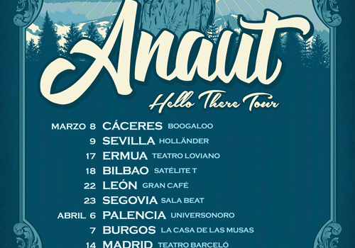A pocos días del lanzamiento de «Hello there», el nuevo álbum de Anaut, que llegará el 27 de febrero, anuncian las primeras fechas de presentación del mismo. Cáceres, Sevilla, Ermua, Bilbao, León, Segovia, Palencia, Burgos, Madrid, Albacete, Valencia, Alicante, Zamora o Vitoria-Gasteiz, son solo los primeros destinos por los que pasará la gira «Hello there». Muy pronto se añadirán nuevas ciudades en las que podremos escuchar las canciones de este nuevo álbum y también, un repaso por temas de los discos que le preceden.