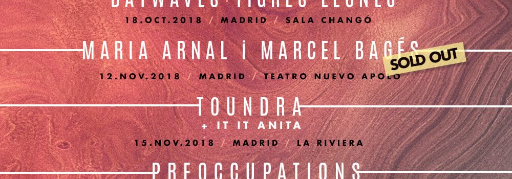 Ya en el mes de noviembre, los protagonistas serán María Arnal i Marcel Bagés, en un concierto que ya ha colgado el cartel de entradas agotadas (12 de noviembre – Teatro Nuevo Apolo); y Toundra + It It Anita, el 15 de noviembre en la sala La Riviera (entradas a la venta).