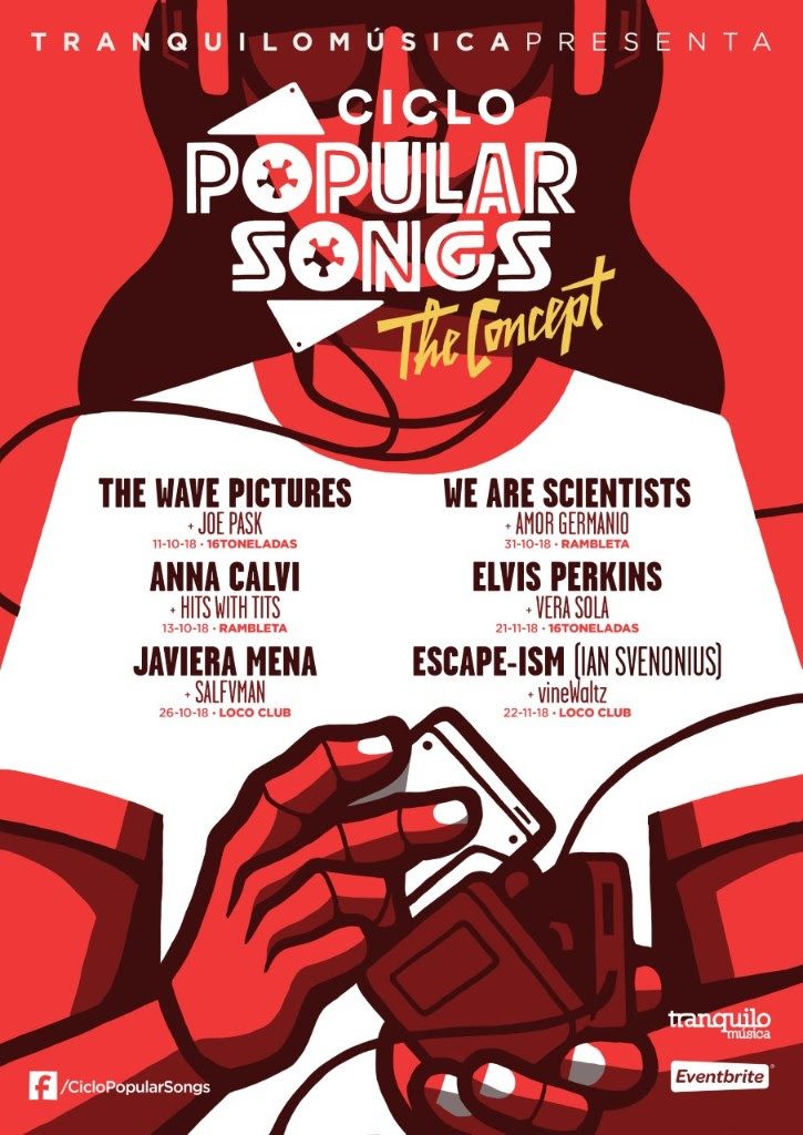 The Wave Pictures, Anna Calvi, Javiera Mena, We are Scientists, Elvis Perkins y Escape-Ism forman la programación del ciclo Popular Songs, con sus artistas invitados Joe Pask, Hitswithtits, Salfvman, Amor Germanio, Vera Sola y vineWaltz que se distribuirá por las salas Loco Club, La Rambleta y 16 Toneladas.