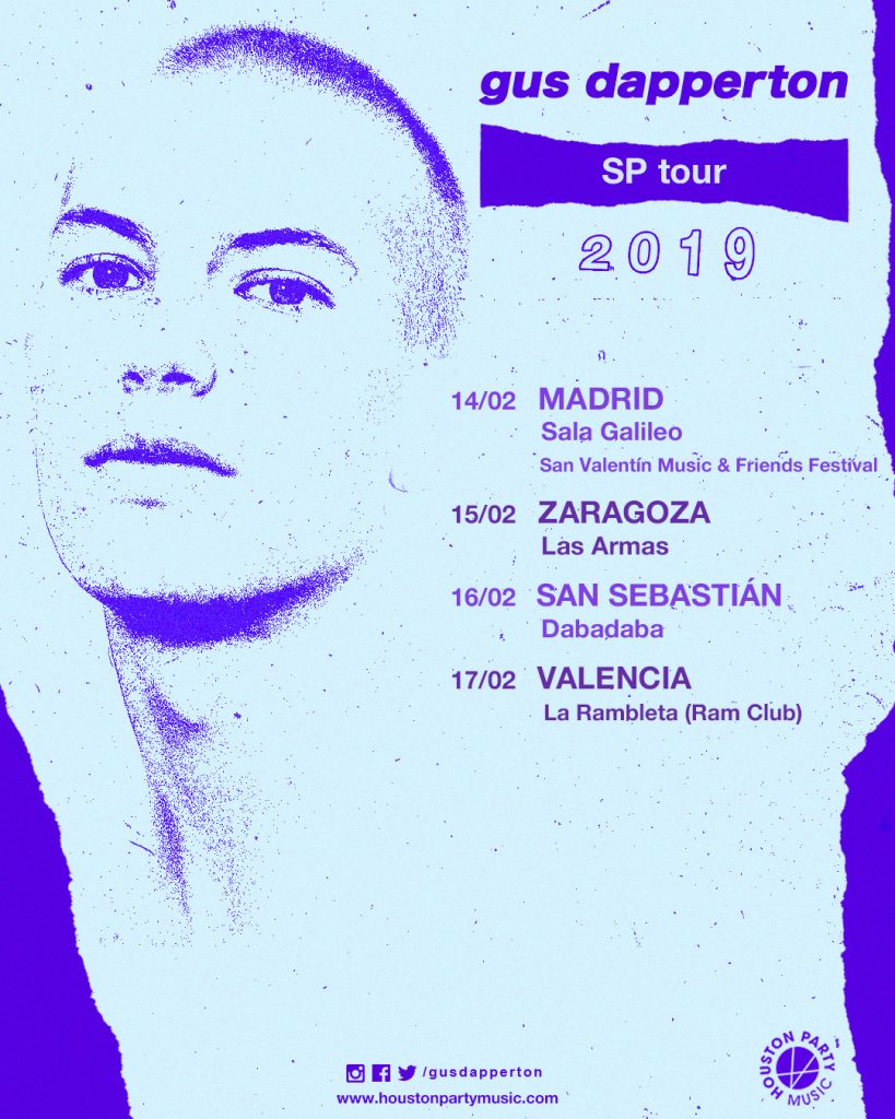 El estadounidense Gus Dapperton y su dream pop estarán de gira por febrero por nuestros escenarios. Las ciudades por donde pasará su tour son Madrid (el 14 de febrero, Galileo, formando parte del festival San Valentín Music & Friends), Zaragoza (el 15, Las Armas), San Sebastián (el 16, Dabadaba) y Valencia (el 17, La Rambleta). Las entradas se pondrán a la venta este viernes 26 de octubre a las 11 horas.