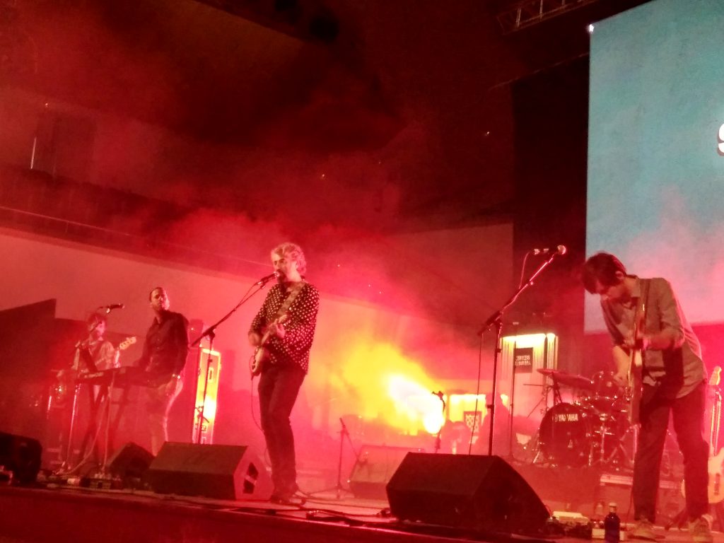 El Petit de Cal Eril fue la siguiente banda en subirse a escena dentro de la Sala Iturbi. Ataviados de un blanco impoluto, Joan Pons y sus drugos llegaron con su mágico, triangular y equilátero nuevo disco “∆” bajo el brazo, contagiándonos de una atmósfera de metafísica nostalgia. Nos deleitaron con sus introspectivas melodías y sus ritmos, a veces obsesivos, con los que cuesta no poner la mente en blanco para dejarse llevar. De su último disco, interpretaron temas como «Som Transparents» o «Les lletres no fan les paraules», éste último con una intro que parece remitir ligeramente al «Je t’aime, moi non plus» de Jane Birkin y Serge Gainsbourg.
