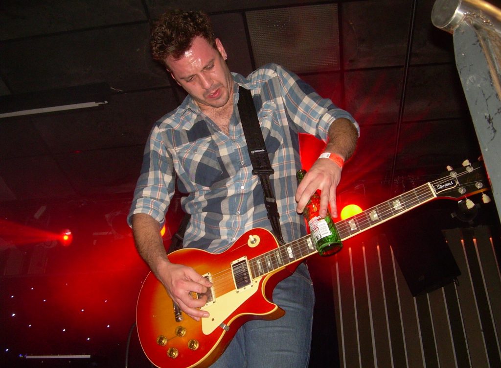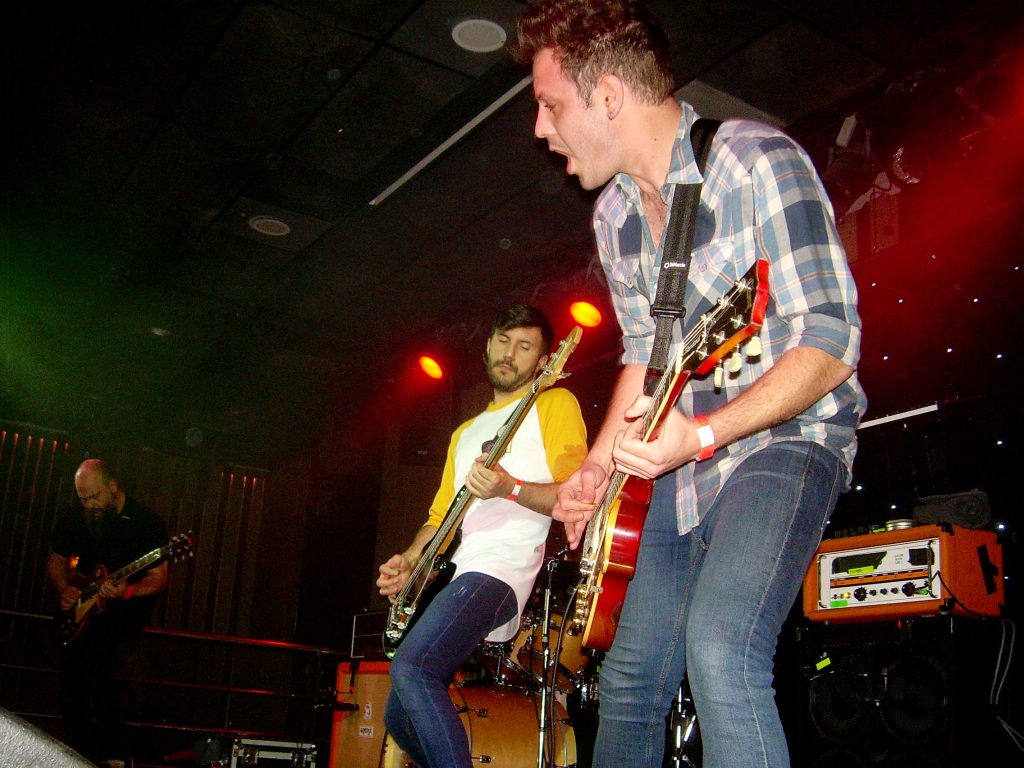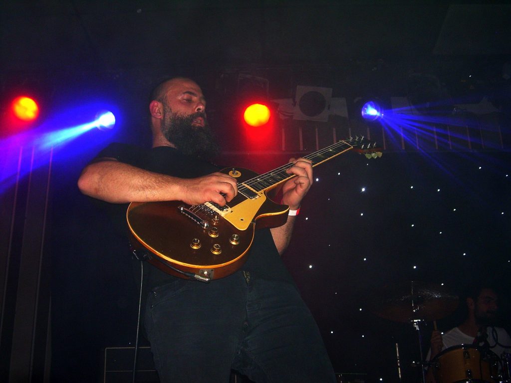 Las guitarras de Toundra dialogan sobre el escenario, se cuentan historias a base de raudos rasguños e hirientes punteados, mientras sus intérpretes se contorsionan extasiados. En algunos de los temas, Alberto Tocados abandonaba el bajo momentáneamente para hacer pequeñas incursiones en los teclados, generando así en las intros unas atmósferas de corte más hipnótico que pronto se veían apabulladas por la explosión de guitarras, como fue el caso de “Kingston Falls”, que se inicia con un delicado leitmotiv marcado por las guitarras y unos sutiles teclados para ir desarrollándose más agudo a lo largo de todo el tema. Un leitmotiv coreado incesantemente por el público con un profundo “lololooo lolololo lololooo…” tras el enardecimiento de Esteban Girón, quién se erigió como maestro de ceremonias, sin micrófono, animando al público durante todo el concierto a ser partícipes de la misma euforia con la que el grupo se imbuye en el escenario, y es que la complicidad entre estos cuatro músicos es más que perceptible sobre el escenario, evidenciando que realmente disfrutan en sus directos. De hecho, precisamente Esteban remató un botellín de cerveza de un trago para acabar tocando la guitarra con el mismísimo botellín.