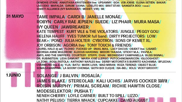 Y todo esto sin renunciar a construir, como cada año, un cartel único en el mundo, arriesgado y rotundo, que viene encabezado por los nombres que definirán la temporada musical 2018-2019: el retorno de Solange al festival, consagrada en su última actuación como la diva R&B que el mundo necesitaba; los paladines de la psicodelia pop Tame Impala con un esperadísimo nuevo disco por presentar; Cardi B, encumbrada como la nueva jefa del hip hop estadounidense gracias a un debut arrollador y a un carisma sin límites; el colombiano J Balvin, máximo exponente de la nueva ola de reguetón destinada a cruzar todas las líneas rojas, además de autor de uno de los discos del año, Vibras; Erykah Badu como indiscutible figura clásica moderna del soul; el abanderado del trap estadounidense Future; la estrella Janelle Monáe armada con su pop politizado; un icono del hip hop como Nas; y, en su inexpugnable ascenso a la cima del pop experimental planetario, Rosalía. Completan la parte alta del cartel James Blake como epítome del nuevo creador que conjuga baile y emoción, Interpol de la mano de un nuevo álbum que recupera su mejor versión y la sueca Robyn con su disco de regreso tras ocho años de silencio.