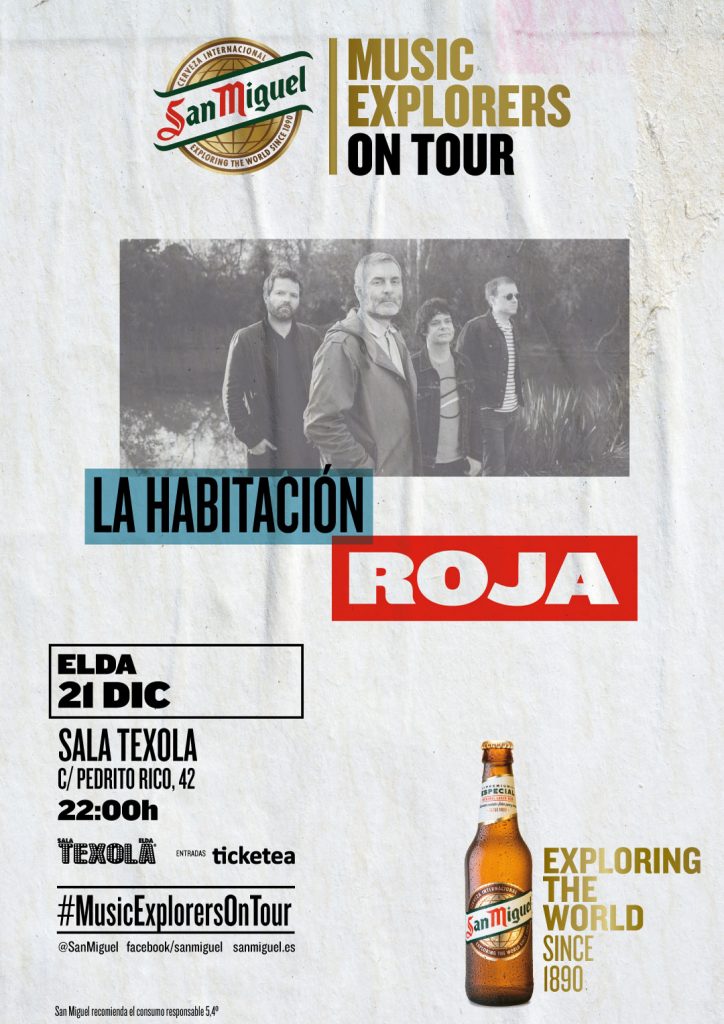 San Miguel Music Explorers On Tour elige Elda para cerrar su gira valenciana con la actuación de La Habitación Roja. El concierto tendrá lugar en la Sala Texola este viernes 21 de diciembre a partir de las 22h. Las entradas ya están disponibles a través de la web de Ticketea.