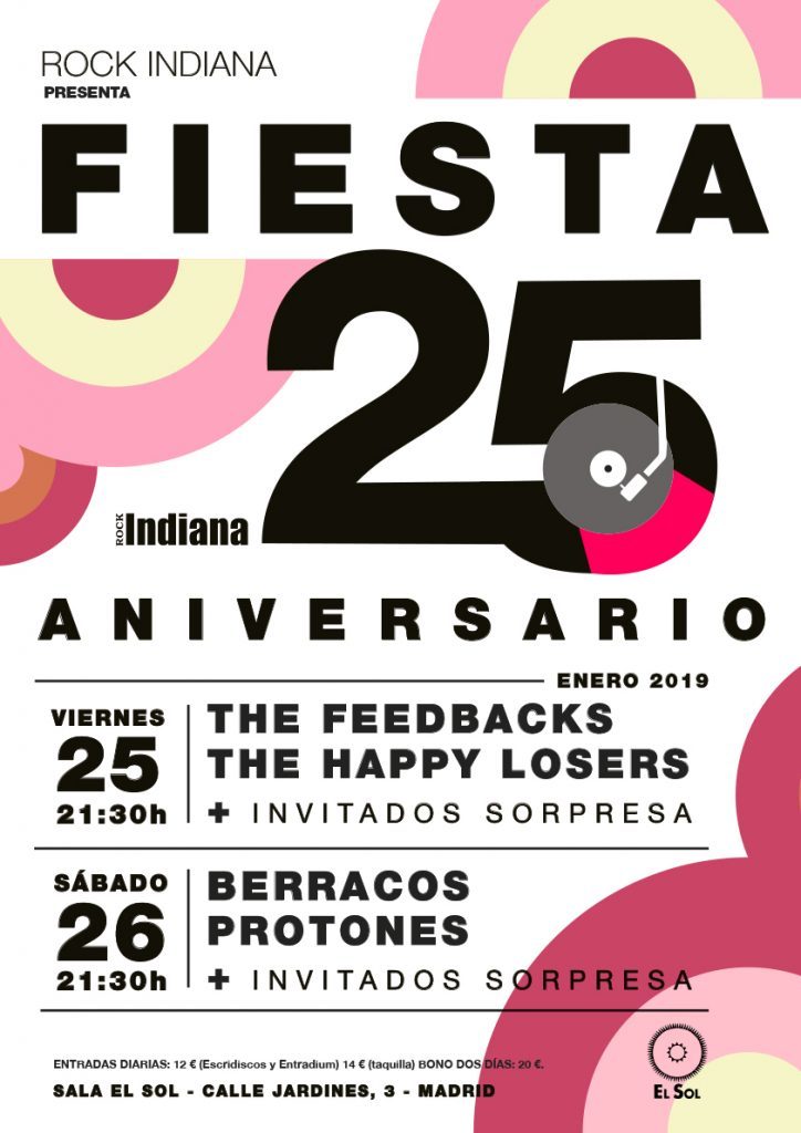 Rock Indiana celebra su 25 aniversario con una fiesta en Madrid en la que actuarán Feedbacks, Happy Losers, Berracos y Protones en la sala El Sol.