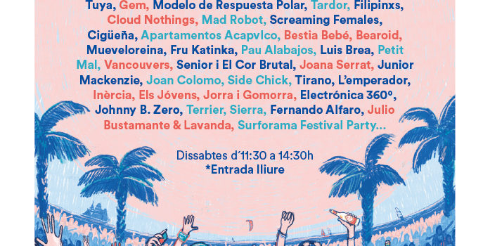 Grupos internacionales como Cloud Nothings, Screaming Females (norteamericanas) y Bestia Bebé (Argentina) se unen a destacados nombres del panorama independiente nacional como Saïm, Apartamentos Acapulco, Luís Brea, Joana Serrat, Vancouvers, Joan Colomo o Terrier. Y no faltará la nota valenciana representada en nombres como Cuello, Alberto Montero, Modelo de Respuesta Polar, Tardor, Fru Katinka, Inèrcia o Senior i el Cor Brutal.