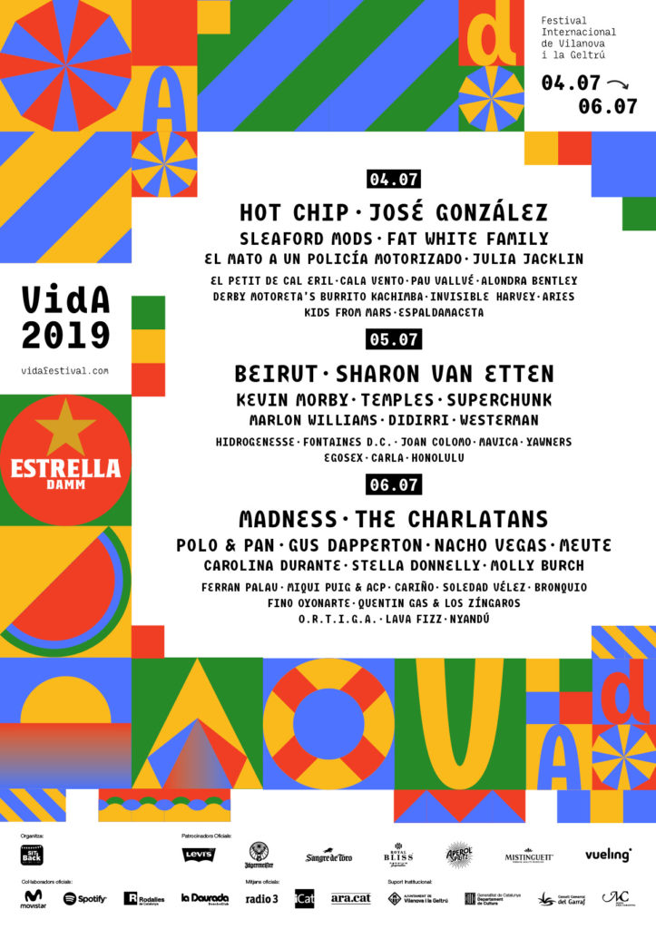 Con las primeras confirmaciones protagonizadas por nombres como Madness, Beirut, Hot Chip, The Charlatans, Superchunk o Sharon Van Etten —entre otras—, al cartel del VIDA 2019 se suman más de 30 confirmaciones entre las cuales destacan José González, Kevin Morby, Temples, Fat White Family, Polo & Pan, Meute, Gus Dapperton, Nacho Vegas, Carolina Durante, El Petit de Cal Eril, Cala Vento o Ferran Palau —entre otros muchos—. El cartel de este año quedará completo con la programación de electrónica dentro del marco del Vida Club que se anunciará el próximo mes de marzo.