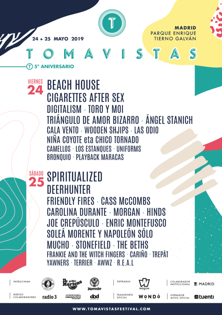 El viernes 24 pasarán por el Parque Enrique Tierno Galván Beach House, Cigarettes After Sex, Digitalism, Toro y Moi, Triángulo de Amor Bizarro, Ángel Stanich, Cala Vento, Wooden Shjips, Las Odio, Niña Coyote eta Chico Tornado, Camellos, Los Estanques, Uniforms, Bronquio y Playback Maracas.