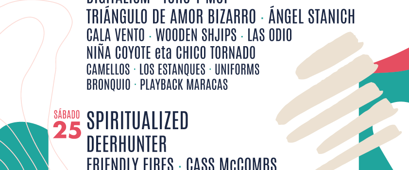 Y en el cierre del sábado 25 los protagonistas serán Spiritualized, Deerhunter, Friendly Fires, Cass McCombs, Carolina Durante, Morgan, Hinds, Joe Crepúsculo, Enric Montefusco, Soleá Morente y Napoleón Solo, Mucho, Stonefield, The Beths, Frankie and The Witch Fingers, Cariño, Trepàt, Yawners, Terrier, Awwz y r.e.a.l.