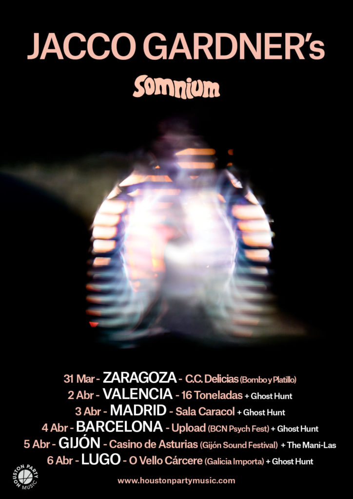 El dúo portugués Ghost Hunt teloneará la gira de Jacco Gardner´s Somnium en cuatro de las seis fechas del tour. Concretamente, serán las ciudades de Valencia (el 2 de abril, 16 Toneladas), Madrid (el 3, Caracol), Barcelona (el 4, Upload, dentro del Barcelona Psych Fest) y Lugo (el 6, O Vello Cárcere, fomando parte del Ciclo Galicia Importa) las que acogerán la presencia de esta pareja de Lisboa. Zaragoza el 31 de marzo (Centro Cívico Delicias) y Gijón el 5 de abril (Gijón Sound Festival) son las dos paradas de la gira donde Ghost Sound no actuarán. En la ciudad asturiana abrirá la noche el power trío madrileño The Mani-Las.