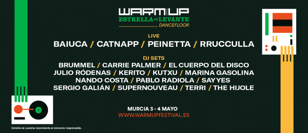 WARM UP Estrella de Levante saca hoy a relucir su lado más bailable. Si hace unos días anunciaba su programación gratuita, hoy se confirma el cartel completo de WARM UP Dancefloor, la zona de electrónica y pop al aire libre en el recinto La Fica que pondrá a bailar a miles de asistentes durante 12 horas al día.
