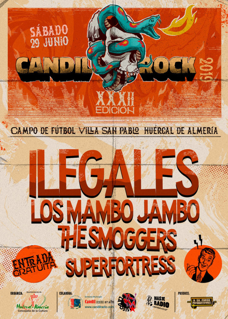 Ya cantaba Miguel Ríos que los viejos rockeros nunca mueren. Y esa legendaria aseveración se puede aplicar tanto al festival Candil Rock, de Huércal de Almería, como a la banda que tendrá la misión de encabezar el cartel de su trigésimo segunda edición. La que se celebrará el próximo 29 de junio, sábado, en el campo de fútbol Villa San Pablo de la localidad huercaleña, con entrada totalmente libre y gratuita. Así lo ha desvelado esta mañana la alcaldesa Ángeles Castillo, acompañada de la concejala de cultura María Dolores Salmerón, el concejal de seguridad Amador Andrés, el primer teniente alcalde Juan Ibáñez y Antonio Alcaraz, de A La Carga Producciones. Además de Ilegales, el cartel se completa con tres grupos en plena trayectoria ascendente: Los Mambo Jambo, The Smoggers y Superfortress.