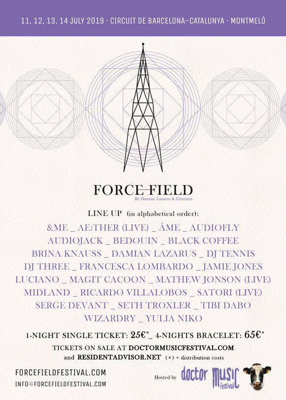 Los abonos para asistir al Doctor Music Festival dan libre acceso al escenario Force Field, sin ningún cargo adicional, para las mismas fechas en las que sean válidos dichos abonos. Los abonos de 3 días para Doctor Music Festival dan también libre acceso a Force Field la noche del Jueves 11 Julio.
