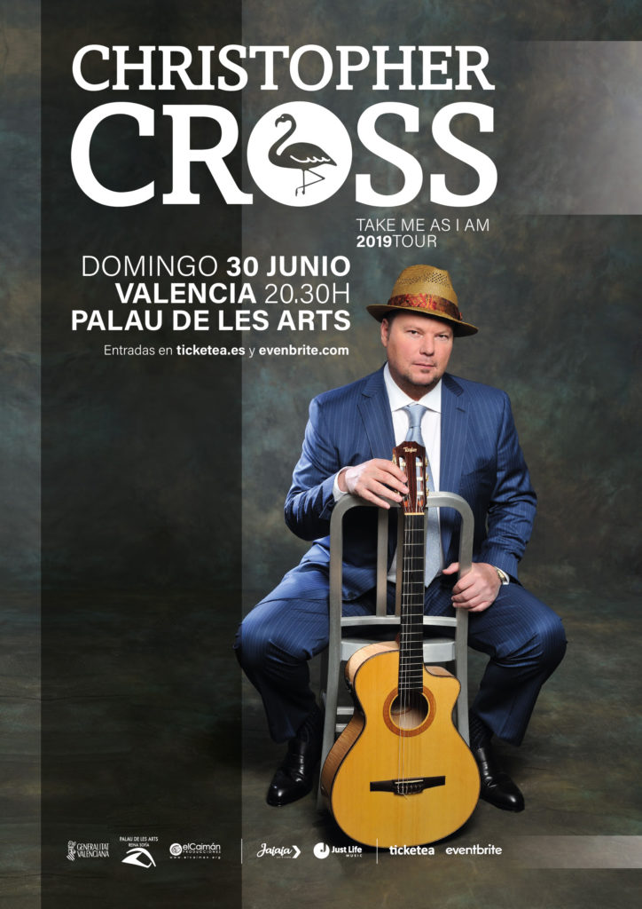 El cantante Christopher Cross actuará el domingo 30 de junio en el Palau de les Arts Reina Sofía de València. La actuación del artista norteamericano formará parte de la gira de presentación de su decimotercer álbum, «Take Me As I Am» (Christopher Cross Records, 2017). Antes de llegar a la capital del Turia, el tour habrá recorrido buena parte de los Estados Unidos de América y Japón.