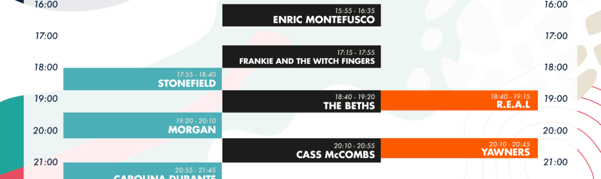 A partir de las 18:00h, Stonefield, The Beths, r.e.a.l., Morgan, Cass McCombs y Yawners tocarán hasta el anochecer sobre las tablas de los tres escenarios.