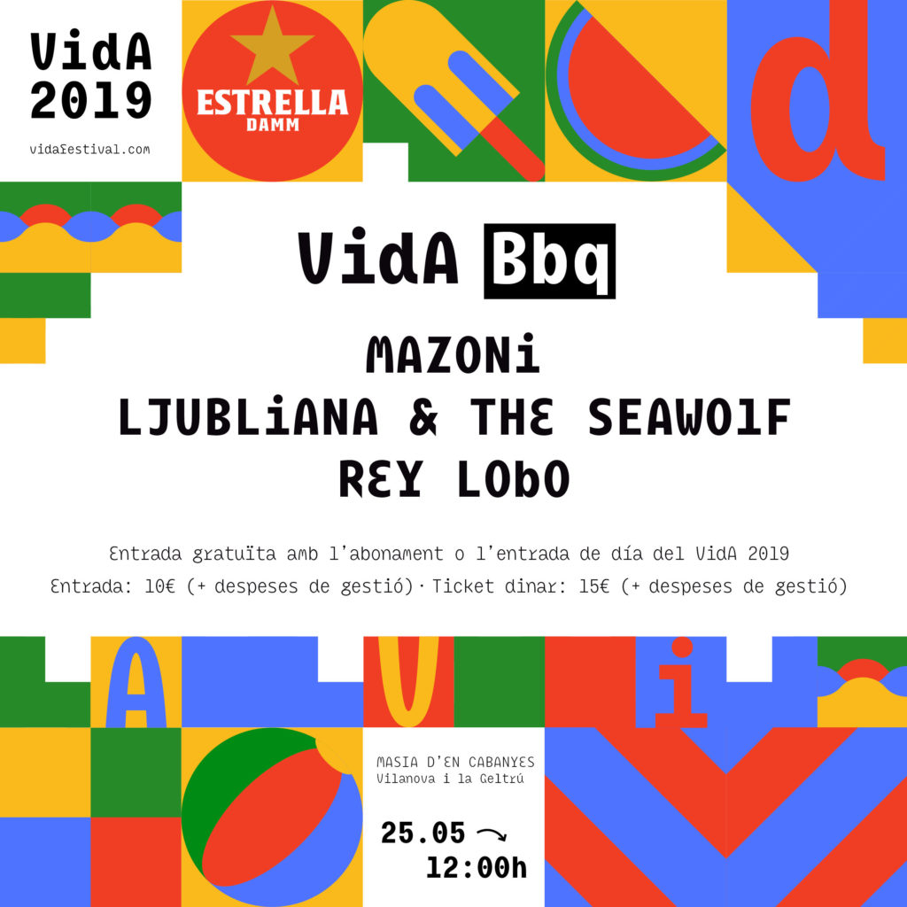 El sábado 25 de mayo se celebrará la cuarta edición del VIDA BBQ. Un evento que acogerá la Masia d’en Cabanyes desde las 12h del mediodía hasta las 22h, y que contará con las actuaciones de Mazoni, Ljubliana & The Seawolf y Rey Lobo. Además, los VIDA DJs (& friends) se encargarán de amenizar la velada.