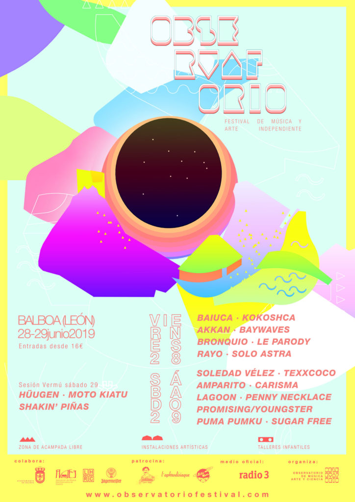 Observatorio Festival es posible gracias al patrocinio de Vermouth Forzudo, Bodegas L’Aphrodisiaque y Cervezas AstroMona y la colaboración de Radio 3, Jägermeister, AMEE, LHRC Arquitectura y Ayuntamiento de Balboa.