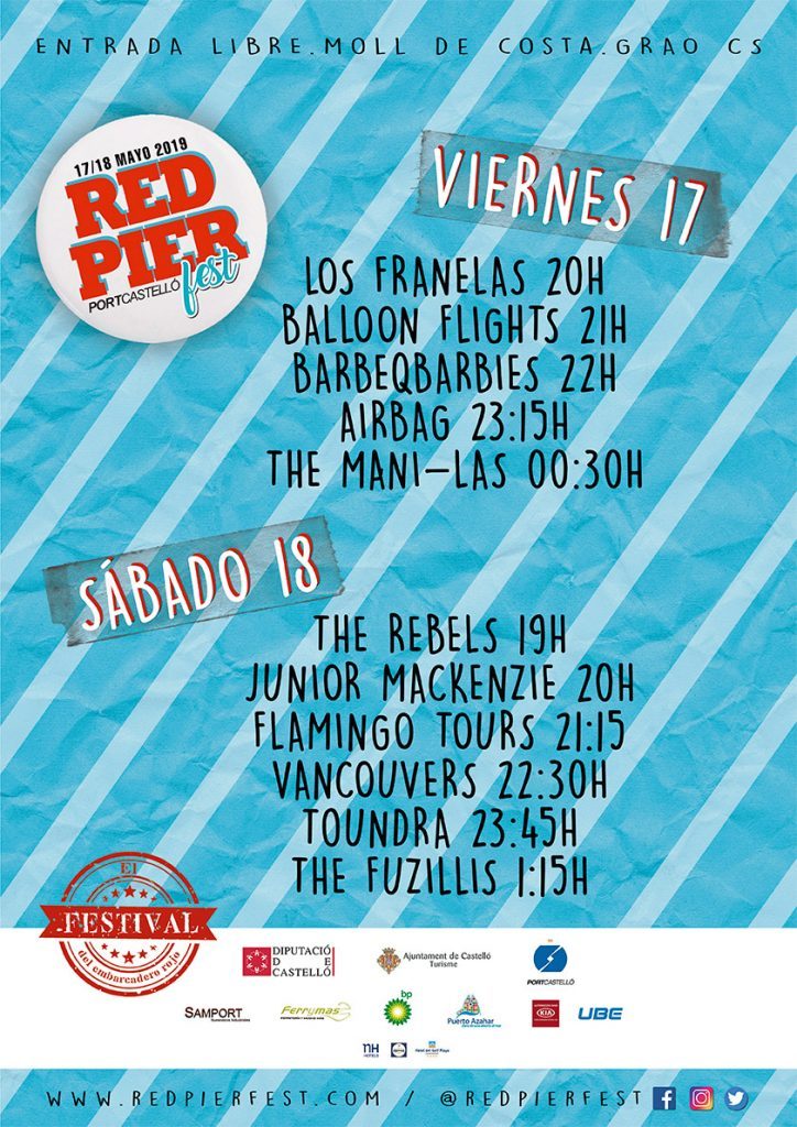 A una semana de la celebración del Red Pier Fest en el Grao de Castellón, os ofrecemos la distribución por días y los horarios de las diferentes bandas que actuarán en el Moll de Costa, con entrada gratuita. Dos jornadas de música para disfrutar del buen clima de la costa.