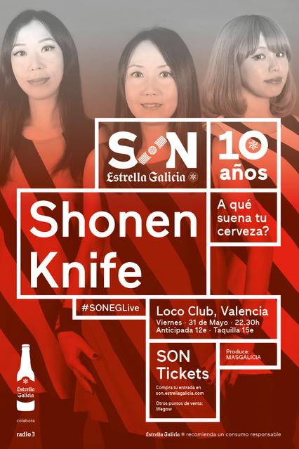 Dentro de su gira europea que las llevará por Bélgica, Holanda, Austria, Alemania, Inglaterra, Francia e Italia, el trío nipón Shonen Knife actuará en España en Loco Club de Valencia el 31 de mayo en el Ciclo Son Estrella, además de su concierto en el Primavera Sound barcelonés.