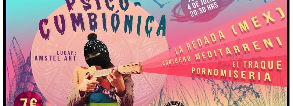 Llega el concierto fiesta La Psicocumbiónica el 4 de julio a la sala Amstel Art. Contará con el grupo de psicodelíca cumbia mejicano La Redada, el mejicano valenciano Sonidero Mediterraní, y los DJs recien llegados a Valencia del Colectivo La Horrorosa.
