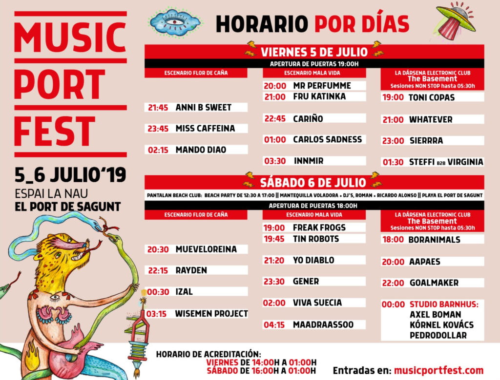 La segunda edición del Music Port Fest abrirá sus puertas mañana viernes, 5 de julio, a las 19:00 horas. Durante esta primera jornada, el público podrá disfrutar con las actuaciones de Mando Diao, Carlos Sadness y Miss Caffeina. Además, los escenarios del evento acogerán las propuestas de Anni B Sweet, Cariño, Fru Katinka, Mr. Perfumme e Innmir. Por último, laDársena Electronic Club se convertirá en una gran pista de baile gracias al colectivo theBasement y a las sesiones de dos grandes figuras de la cultura de club europea como Steffi y Virginia y a los Djs valencianos Toni Copas, Whatever y Sierrra.