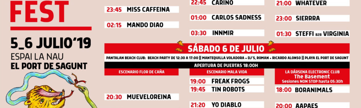 El trío Cariño, una de las últimas revelaciones del pop estatal, interpretará temas como “Llorando en la limo”, “Bisexual” o “La bajona” a partir de las 22:45. Una hora después será el turno de Miss Caffeina. El cuarteto madrileño llegará al festival con su nuevo disco, Oh Long Johnson (Warner Music), bajo el brazo. Al terminar su actuación, los asistentes se adentrarán en el particular mundo de Carlos Sadness. El artista sigue inmerso en la gira de presentación de Diferentes tipos de luz (Sony Music, 2018). Seguidamente, los suecos Mando Diao, apuesta internacional de la organización, harán acto de presencia en el escenario Flor de Caña a partir de las 2:15. La formación liderada por Björn Dixgård interpretará éxitos como “Dance with Somebody”, “Black Saturday” o “Shake”. Finalmente, la Dj valenciana Innmir exprimirá las últimas fuerzas del público con una sesión cargada de pop, indie y electrónica.