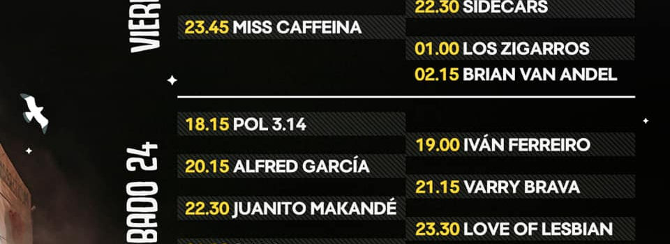 Esta segunda edición tiene un cartel de artistas con lo mejor del panorama indie-rock nacional: Love Of lesbian, Miss Caffeina, Sidecars, Second, Iván Ferreiro, SFDK, Alfred García, Full, Juanito Makandé, Varry Brava, Los Zigarros, Despistaos, Luc Loren, Brian Van Andel, Ñekü, POL 3.14 y Julieta 21, además de un gran numero de sesiones DJ´s.