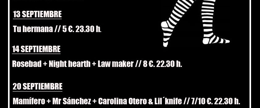 20 SEPTIEMBRE: Mamífero + Mr. Sánchez + Carolina Otero & Lil´knife. 7/10 €. 22.30 h.
