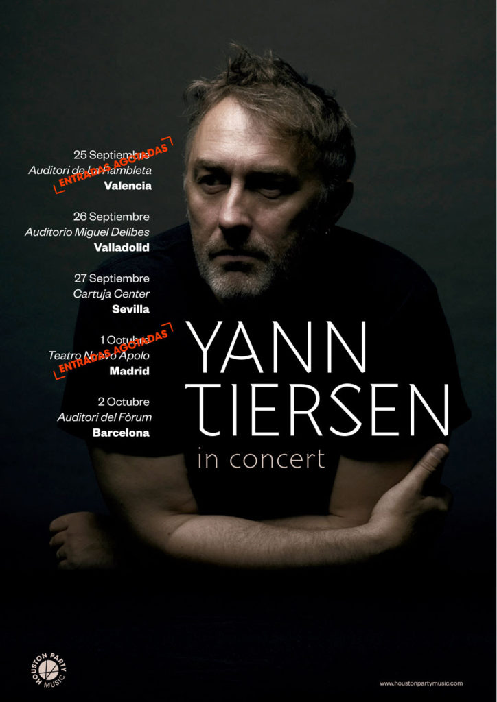 El francés Yann Tiersen ha agotado las entradas del concierto que ofrecerá en Valencia el 25 de septiembre (Auditorio La Rambleta). Este “sold out” se suma al que ya anunciamos a mediados de agosto que también ha logrado en su concierto del 1 de octubre en Madrid (Teatro Nuevo Apolo). Las otras tres actuaciones de su tour otoñal, y para las que aún quedan algunas entradas, son las siguientes: Valladolid, el 26 de septiembre (Auditorio Miguel Delibes), Sevilla, el 27 (Cartuja Center) y Barcelona, el 2 de octubre (Auditori del Fòrum).