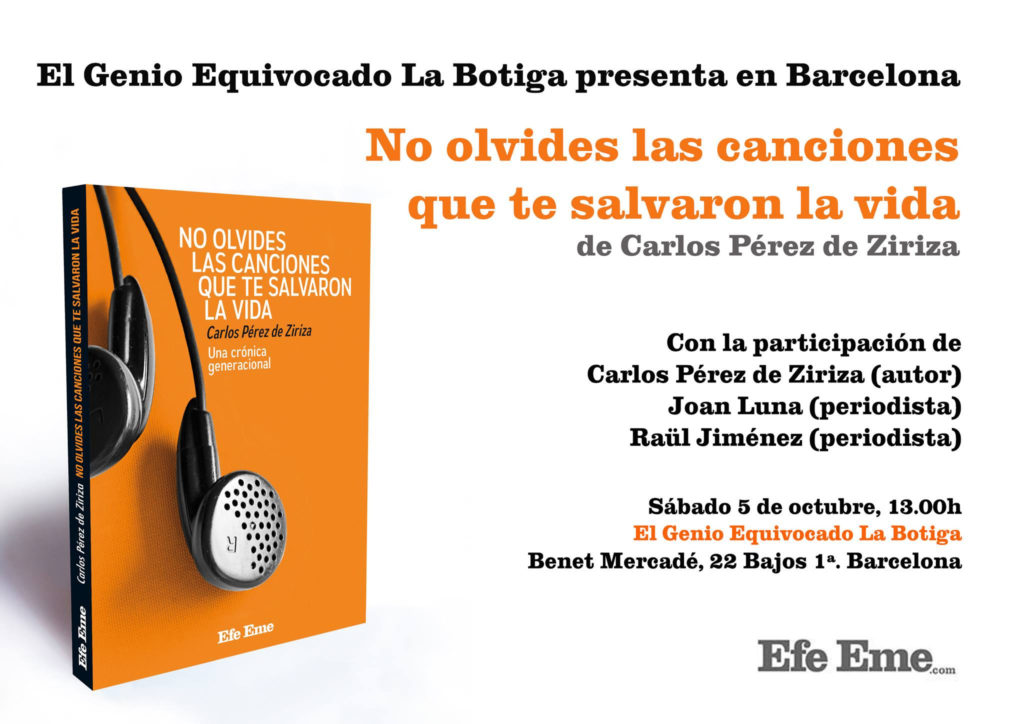 «No olvides las canciones que te salvaron la vida» (Efe Eme) es una experiencia vital narrada a través de treinta canciones, algunas que se convirtieron en hits, y otras que pasaron más inadvertidas, que ahondan en asuntos como la nostalgia, la pérdida, los sueños de juventud, el amor, el paso del tiempo, la madurez e incluso el estado de la prensa musical; al tiempo que recorren buena parte de la historia viva de géneros como el indie, el pop, el rock alternativo, el hip hop, el trap o la electrónica.A manos de canciones imperecederas de Pixies, New Order, Los Planetas, Patti Smith, La Habitación Roja, R.E.M., Arcade Fire, El Niño Gusano, Kate Tempest, Nick Cave, Yung Beef o Teenage Fanclub, entre otros muchos.