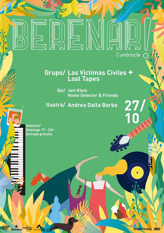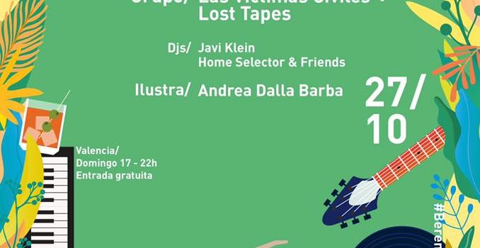 Este domingo 27 de octubre desde las 17h y hasta las 22h los grupos valencianos Lost Tapes y Las Víctimas CIviles serán los encargados de poner el directo, con acceso libre y gratuito. El artista italiano Andrea Dalla Barba ilustrará en vivo el ambiente del concierto, mientras que Home Selector y Javi Klein comandarán la propuesta sonora desde cabina.
