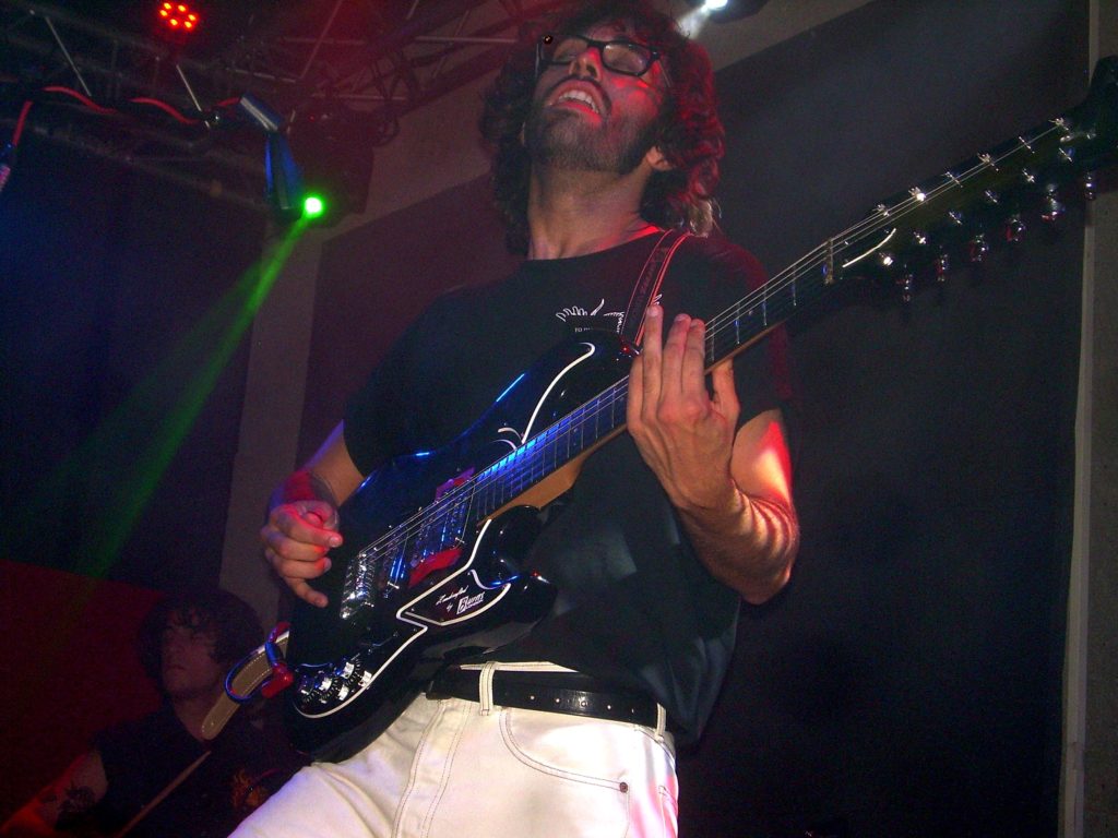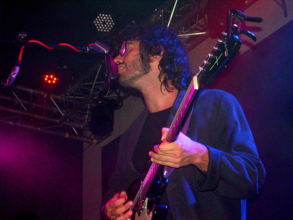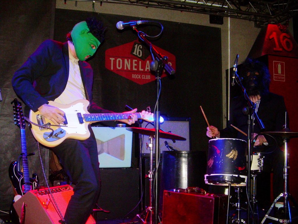 A la medianoche, un misterioso guerrero mexicano, escoltado por un batallón de pedales, y un distinguido gorila subían al escenario para orquestar toda la cacharrería allí presente. Bajo una atmósfera de terror y ciencia ficción propias de la serie B, Pelo Mono emergían del averno para abrir una noche de ritmos tan turbios como hipnóticos, con una serie de loops que iban marcando los sonidos de base más graves, acentuados por una batería muy poco convencional, donde una vieja maleta, un cubo de pintura y un cubo de basura reemplazaban a los toms y el bombo, mientras las maracas se solapaban con los platillos puntualmente. Mención especial para las melodías guitarreras de Pedro de Dios, que tan pronto parecen invocar a Link Wray, como al rythm and blues más selvático, y es que sobre las cuerdas sus manos parecen transformarse en las raptoras patas de una mantis que, a toda velocidad, va componiendo un rock’n’roll instrumental difícil de clasificar. A toda esta amalgama sonora, se sumaban de vez en cuando distorsiones y las melodías analógicas de un pequeño stylophone en temas como “Sonido Amazónico”. El broche final lo puso “Waaaaght!” con los gruñidos cavernosos del guerrero mexicano y un sonido que explora algunos derroteros más surf. Una propuesta la de Pelo Mono que en directo resulta tan sucia, en el buen sentido de la palabra, como magnética gracias a esos sutiles ritmos jazzísticos que subyacen en gran parte de unas melodías que te hacen contonear golpeando incensantemente el suelo con los pies.
