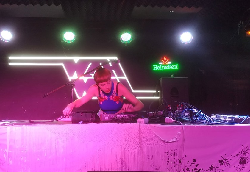 ¿Puede la tradición flamenca colarse deliberadamente en una rave party y dejar en trance al personal allí presente? Sí puede, y si no que pregunten al público que presenció el concierto de Le Parody, que sí, que éramos pocos pero entregados, porque ante una propuesta musical tan auténtica los sentidos no pueden más que sucumbir y pedir una dosis más. Sole Parody se plantó en solitario sobre el escenario, tras toda esa maquinaria programable, mientras la otra mitad responsable del sonido, Ana, lo hizo desde los controles de la mesa de sonido. La granadina presentaba su último disco “Porvenir”, el cual interpretó prácticamente íntegro, dejando que unos pocos temas de su anterior disco “Hondo” o el single
