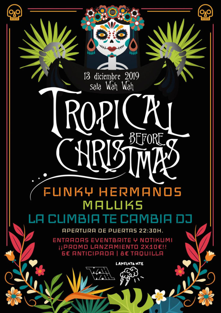 Nos acercamos a la pesadilla de las Navidades y a los amigos de La N Flotante no se les ocurre mejor plan que organizar una fiesta tropical con artistas en directo para entrar en calorcito. El próximo 13 de diciembre en la Sala Wah Wah celebrarán la fiesta Tropical Before Christmas con las actuaciones de Funky Hermanos, Maluks y LaCumbia TeCambia.