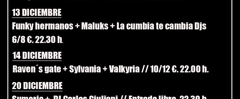 13 DICIEMBRE: Tropical before Christmas: Funky hermanos + Maluks + La cumbia te cambia Djs. 6/8 €. 22.30h.