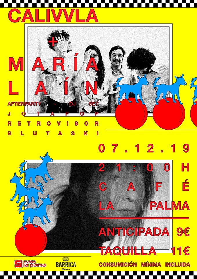 Calivvla actuarán por primera vez en Madrid el próximo sábado 7 de diciembre en el Café la Palma. En este concierto les acompañará María Laín y habrá una gran fiesta final que contará con los Djs Jotapop, Retrovisor y Blutaski.