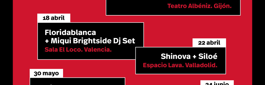 La siguiente parada, el 18 de abril, tendrá lugar en la Sala El Loco de Valencia de la mano del pop bailable de Floridablanca. Sin mayor pretensión que la de fabricar hits que todo el mundo quiera tararear, el grupo se presenta como ‘la banda sonora del fin de semana’. Para no dejar de moverse, las mezclas de uno de los productores musicales emergentes más talentosos de la escena, Miqui Brightside Dj Set, cerrarán esta cita en la capital levantina.