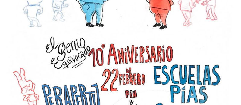 El Genio Equivocado cumple 10 años. Fue un 10 de enero de 2010 cuando empezábamos esta aventura. Para celebrarlo, montamos (de momento) unos cuantos saraos en enero, febrero y abril. Comenzamos en enero con la exitosas fiestas organizadas en Madrid y en Barcelona. En febrero, tras la fiesta en La Capsa de El Prat, llega ahora el momento de l’Hospitalet de Llobregat, y será Espai Z0W1E el que acoja la fiesta dentro de la programación del Let’s Festival. Será el próximo sábado 22 de febrero y contaremos con los directos de Escuelas Pías, Ghost Transmission, Perapertú y Grushenka.