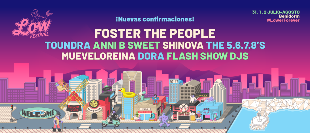 Virginia Díaz acaba de anunciar más sorpresas para Low Festival en ‘180 grados’ de Radio 3. Después de unas últimas confirmaciones cargadas de nombres nacionales e internacionales que sumaron a las filas del festival bandas de la talla de King Gizzard & The Lizard Wizard o Metronomy, el festival todavía guarda grandes nombres en la recámara. Hoy, el line-up de #Low2020 se hace más grande con las confirmaciones de Foster The People, Toundra, Anni B Sweet, Shinova, The 5.6.7.8’s, Mueveloreina, DORA y Flash Show DJs.