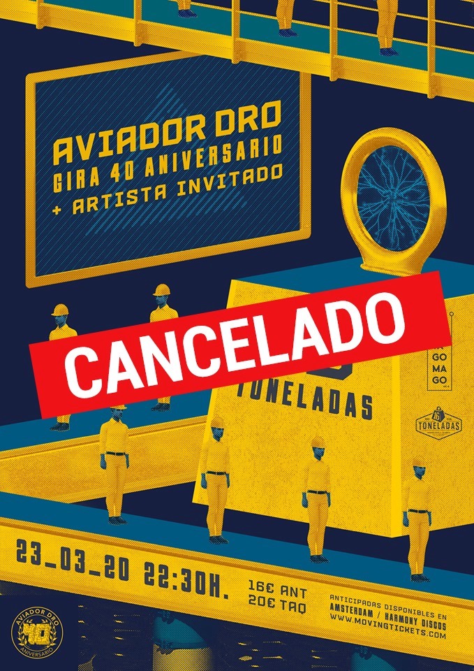 Estimados amigos: desde el lunes pasado tanto El Aviador Dro y sus Obreros Especializados, como los organizadores del evento, 16 Toneladas y Tagomago Fest hemos estado observando y escuchando con atención el devenir de los acontecimientos provocados por el avance del COVID-19 en nuestro país y fundamentalmente, por la parte que nos toca, comunidad y ciudad.