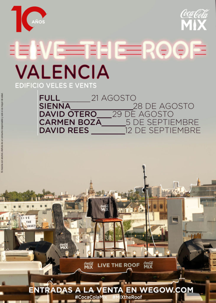 Full, Sienna, David Otero, Carmen Boza y David Rees serán quienes proporcionen grandes momentos al ciclo, interpretando en acústico los mejores temas de su carrera. Lo harán en un entorno exclusivo, la terraza mas alta del emblemático edificio Veles e Vents de La Marina de Valencia a la puesta del sol.