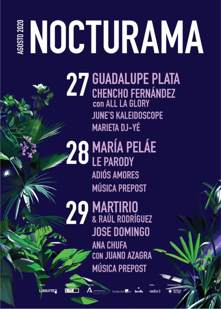 Nocturama volverá puntual a su cita anual en los Jardines del Casino de la Exposición de Sevilla los próximos 27, 28 y 29 de agosto, en una 16ª edición segura y responsable con los tiempos actuales. Y con una programación de ensueño que contará con las actuaciones de Guadalupe Plata, María Peláe, Martirio & Raúl Rodríguez, Chencho Fernández & All La Glory, June’s Kaleidoscope, Le Parody, Adiós Amores, Jose Domingo, y Ana Chufa con Juano Azagra.
