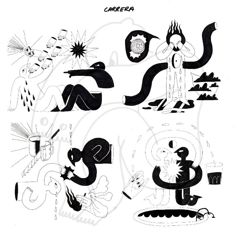 Carrera nos deja en su primer EP cuatro cortes plagados de guitarras angulares y juegos vocales. La ansiedad, la incertidumbre sobre el propio propósito y la toxicidad alrededor de las redes sociales forman parte de la temática en las letras de la banda, que Tomás dispara certeramente y sin anestesia. Pero cuando las atmósferas oscuras que dominan las canciones dejan una rendija para que entre la luz, esta lo hace con fuerza irresistible.