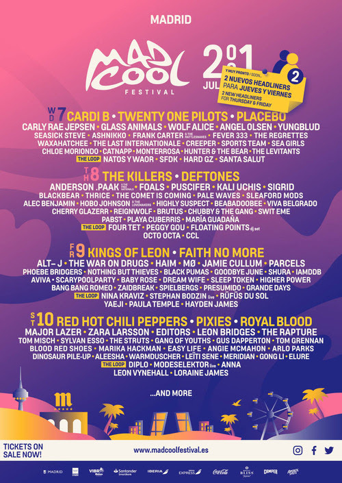 Mad Cool Festival anuncia 27 nuevos nombres para su cartel de 2021 entre los que destaca la rapera americana Cardi B, los originarios de Nashville Kings of Leon, la banda de indie rock estadounidense The War on Drugs o las hermanas HAIM.