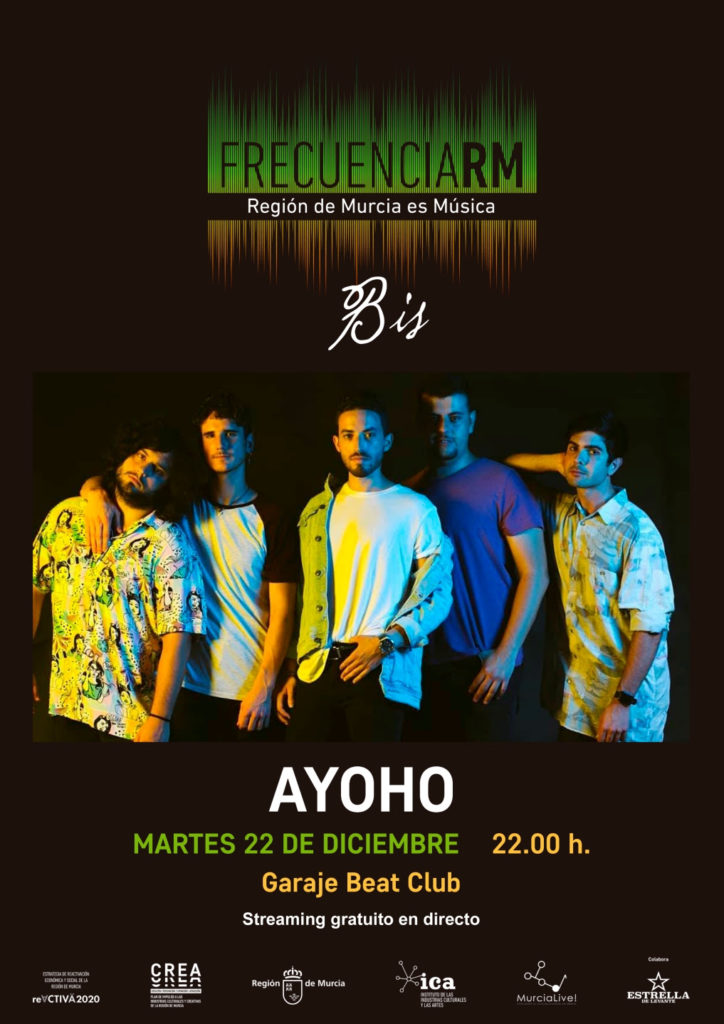El viernes 26 de febrero, en la sala Garaje Beat Club a las 22:00 horas, Ayoho participarán en la iniciativa “Frecuencia RM” del Plan CREA de la Consejería de Educación y Cultura y Murcia Live!, la Asociación de Salas de Conciertos de la Región de Murcia.