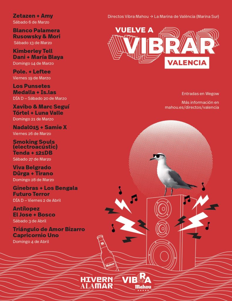 El invierno, al menos musicalmente hablando, se alargará este año. El ciclo de conciertos Directos Vibra Mahou llegan a Hivern a la Mar, el nuevo espacio cultural y de ocio situado en La Marina Sur de Valencia para continuar generando encuentros de calidad en torno a la música en directo.